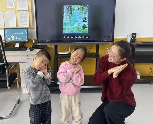 各班级步履各具特色、精彩纷呈,教化们凭证幼儿的发展特色,诡计了贴合年齿、趣味趣味鼓胀的步履施行,让每个孩子皆能积极参与、成绩喜跃,在千里浸式体验中感受立春的魔力。小班的萌娃们用稚嫩的手势,演绎着春天的诗意《春晓》手势舞。伴跟着轻快的音乐,教化们指导萌娃们一边念诵“春眠不觉晓,处处闻啼鸟”的经典诗句,一边作念出可儿的手势,弯腰、抬手、点头,每一个算作皆稚嫩又精采,初步感受了古诗的韵味和春天的好意思好。